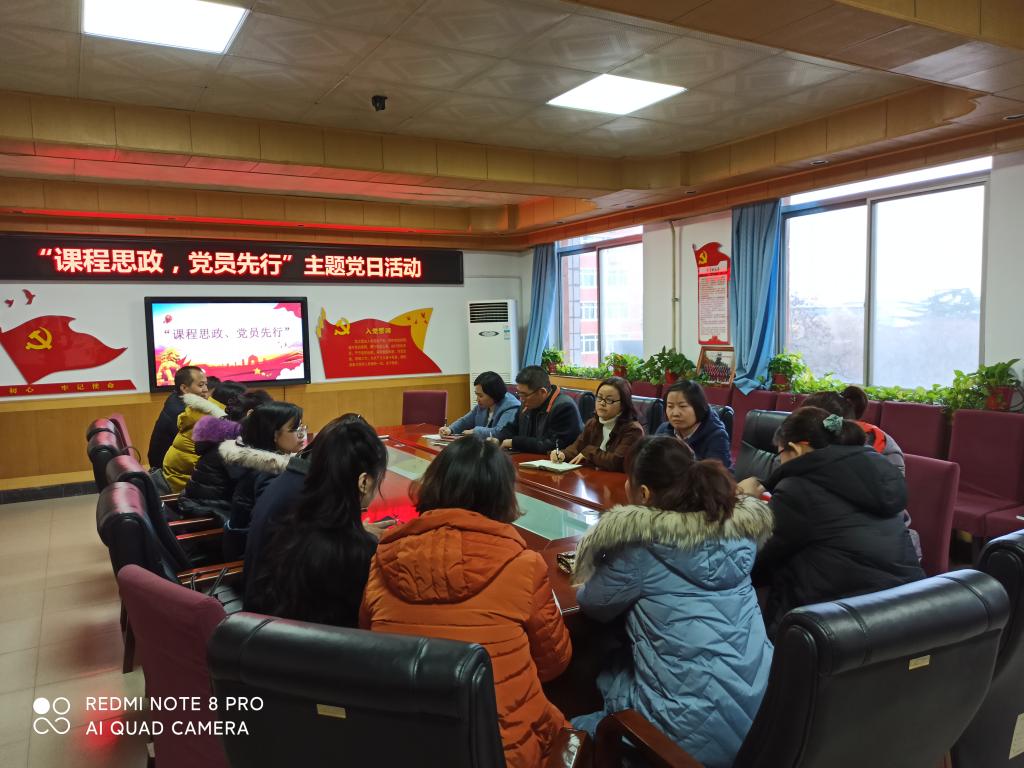 会上,党支部书记付智勇首先向大家介绍了此次主题党日活动的目的,号召全体党员充分发挥模范带头作用,自觉将课程思政元素有机融入专业课程的教学中,带头做好“课程思政”建设工作,充分利用课堂这个主阵地,实现立德树人总目标。在主题党日活动中,各教师党员以本学期所开设课程为例,以教学单元或一次课程为内容,就如何提取“课程思政”元素、明确“课程思政”教学目标、设计教学过程,进行了经验分享与深入探讨。通过广泛交流,支部全体党员对于课程思政的教学实施思路更加明晰,与会党员纷纷表示将按时完成一个教学单元或单次课程的“课程思政”教学设计方案,在此基础上,逐步将“课程思政”教学内容在授课过程中加以落实应用,实现专业课程与思想政治理论课同向同行,形成协同育人目标。