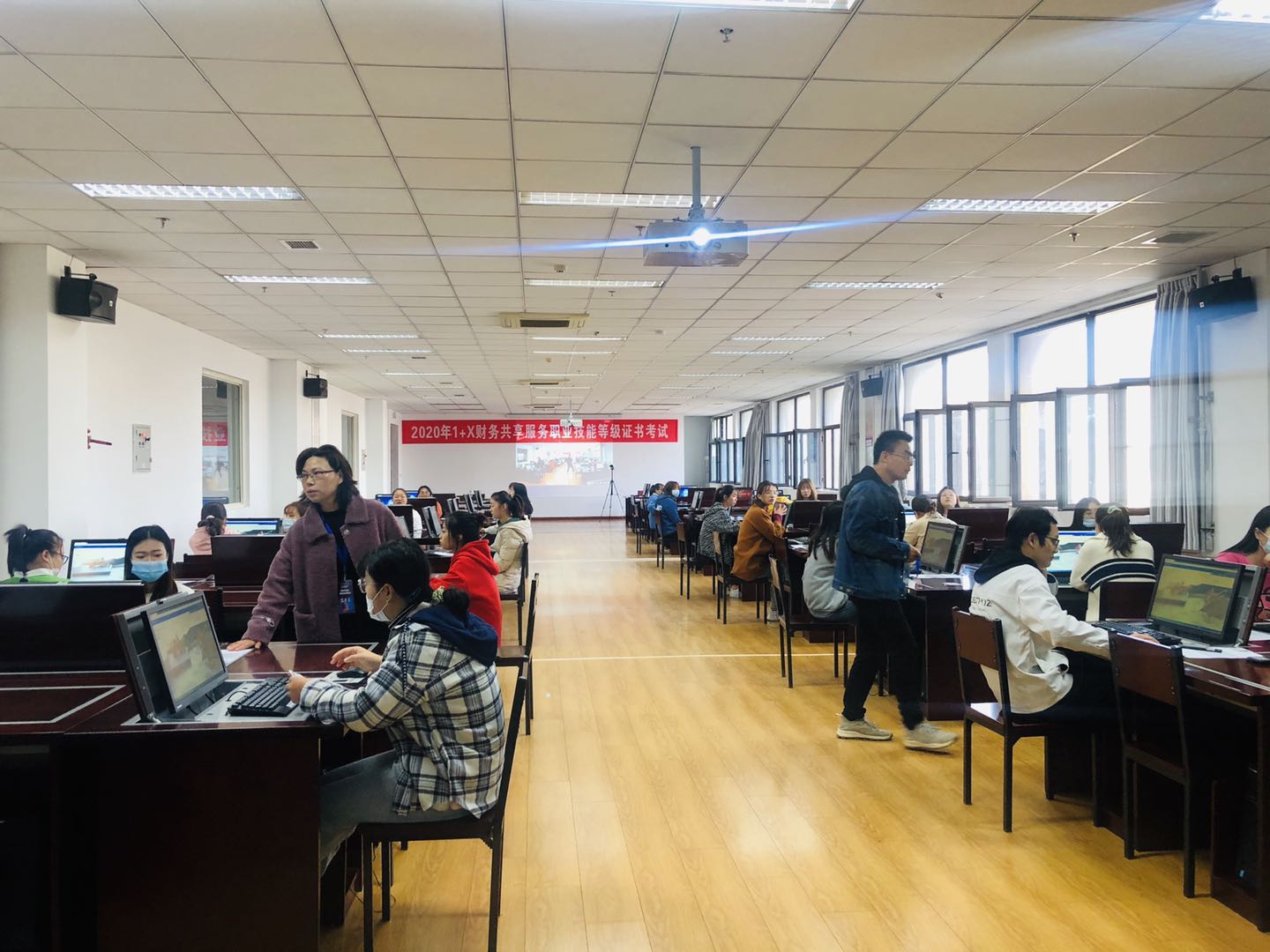 为贯彻《国家职业教育改革实施方案》,部署启动财经学院“学历证书+若干职业技能等级证书”制度试点工作。10月31日,全国“1+X”财税共享职业技能等级证书(初级)试点考试在我院精艺楼7002证券与金融实训室顺利举行。