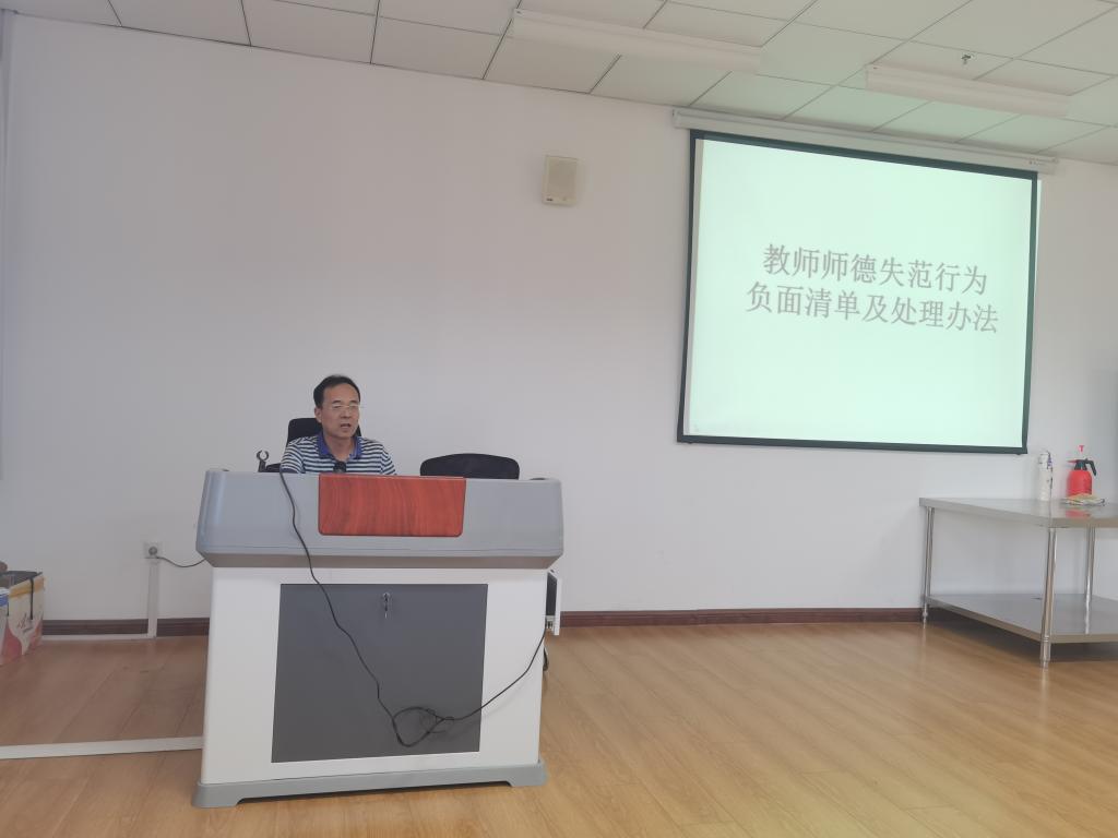 为进一步规范教师履职履责行为,落实立德树人根本任务,9月7日下午,财经与旅游学院党总支在精艺楼7003室召开师德师风专题学习活动,财经与旅游学院全体教职工参会。会议由该院党总支书记孙继龙主持。