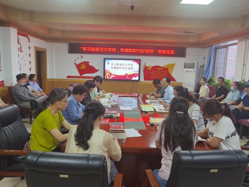 纪实文学《梁家河》由陕西人民出版社出版发行,该书讲述了习近平总书记在梁家河村插队时的工作生活,再现了总书记由一名知青成长为大队党支部书记的历程,真实记录了50年来梁家河村发生的巨大变化。党课上,孙继龙同志从总书记当年下乡背景、过“五关”斩“六将”、十里相送等三个片段分享了总书记当年下乡时的感人故事。分享了自己学习《梁家河》后的感触、感悟与感动,他着重强调了习近平总书记在陕北的苦难经历是一个深入基层的锻炼过程,通过过跳蚤关、饮食关、生活关、劳动关、思想关这五关,磨砺了总书记坚强的意志;通过带领梁家河村民修建沼气池,打淤地坝,打深水井,外乡社教,办铁业社,办代销店缝纫社“斩六将”,踏踏实实为人民做实事,一步一个脚印,形成了总书记为国为民的远大报复。学习梁家河大学问,使我们能够深刻认识到习近平新时代中国特色社会主义思想的形成过程,是我们每个人学习的榜样。孙继龙同志用习近平总书记的寄语勉励大家:“教师要成为学生做人的镜子,以身作则、率先垂范,以高尚的人格魅力赢得学生敬仰,以模范的言行举止为学生树立榜样,把真善美的种子不断播撒到学生心中”。