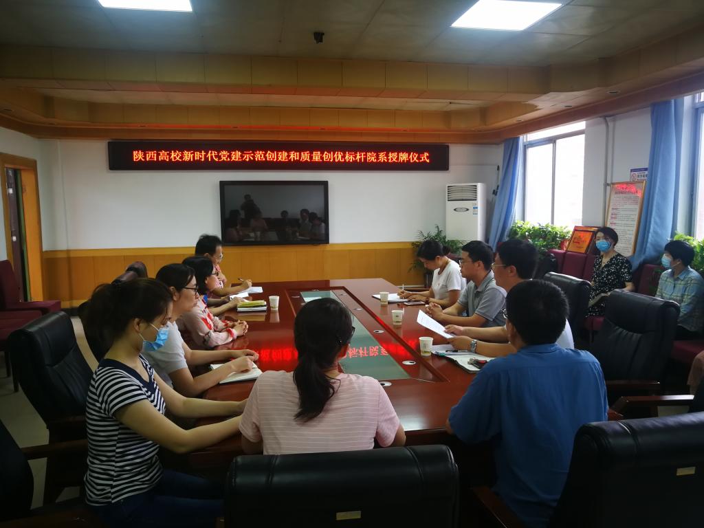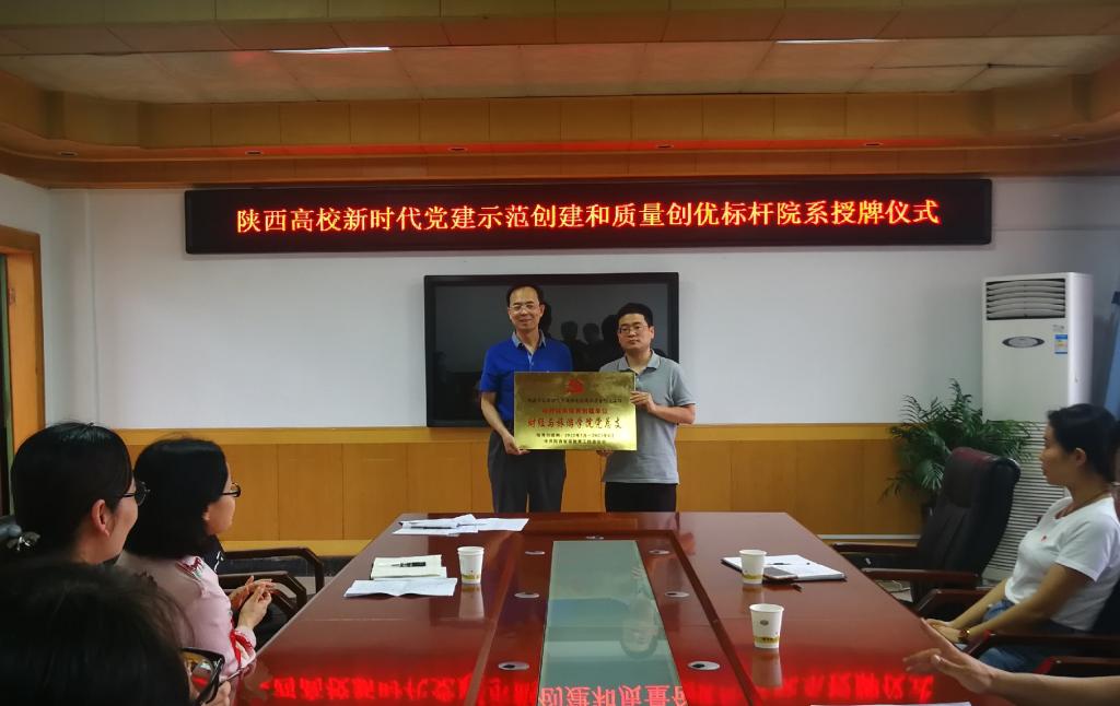 会上,组织部部长王超联同志宣读了《中共陕西省委教育工委关于公布第二批陕西高校党建工作示范高校、标杆院系、样板支部培育创建名单的通知》文件,我院党委入选全省高校党建“双创”示范高校、财经与旅游学院党总支入选全省高校党建“双创”标杆院系、学生工作党总支学生工作党支部入选全省高校党建“双创”样板支部培育创建单位,并对“双创”工作提出了具体要求,财经学院党总支要按照标杆院系“五个到位”的建设要求,认真抓好培育建设及总结提炼,以高质量党建引领高质量发展,为推进“双高”建设及新校区建设提供坚强的政治保证、思想保证和组织保证。党委副书记田昊向财经与旅游学院党总支颁发“陕西高校新时代党建示范创建和质量创优标杆院系”奖牌。财经学院党总支书记孙继龙作表态发言,他首先感谢学院领导、上级党组织对财经学院党建工作的支持和肯定,并简要汇报了前期开展党建“双创”工作的情况以及后续具体实施方案,表示在两年创建期内,按照相关要求,克服困难,扎实工作,以一流业绩创出品牌形成特色。