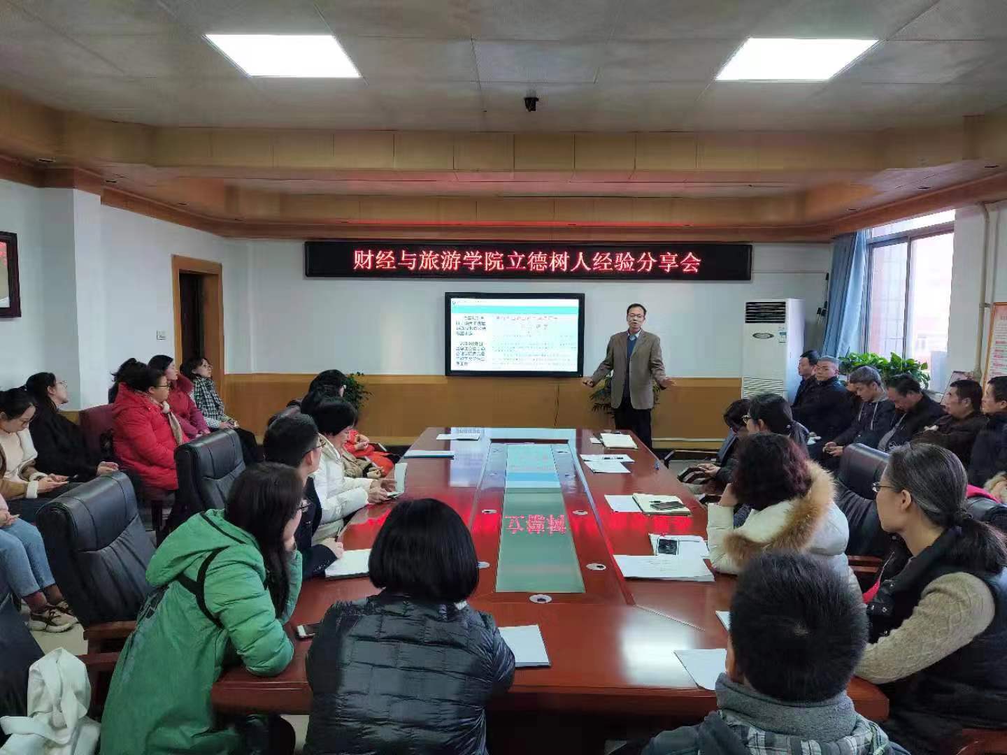 12月30日,财经与旅游学院“立德树人”经验分享会在格物楼408会议室开展,学院全体教职工参加了本次会议。分享会分别由2016年第四届“立德树人”金奖获得者解晶、2018年第六届金奖获得者孙继龙、2019年第七届第一名获得者赵盼盼等三位获奖者分享育人心得。