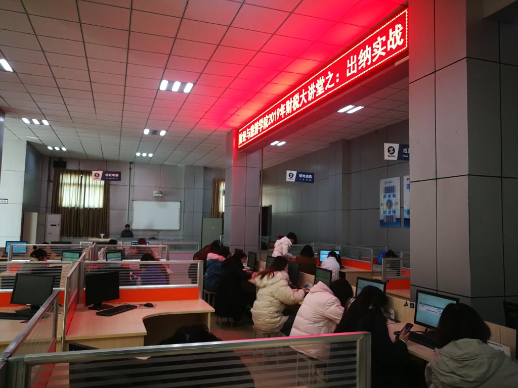 2019年12月25日,财经学院在明德堂三楼会计仿真实训基地成功举办第三期“财税大讲堂”专题讲座。此次讲座由校企合作企业—陕西纳映月尚勤企业管理有限公司薛佳开讲。本次活动由会计教研室薛春艳老师主持,会计教研室全体老师和2018级150余名学生参加。