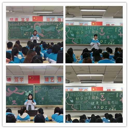 此次主题班会由各班班主任主持,主要围绕艾滋病的流行现状、传染途径、对人类的危害及预防原则等方面展开,通过观看视频、演讲、有奖问答、讨论等多种形式,同学们积极参与其中,宣传活动开展的有声有色,让同学们更加生动形象地认识到其危害性,并引导大家要正确认识艾滋病、消除恐慌和歧视心理。