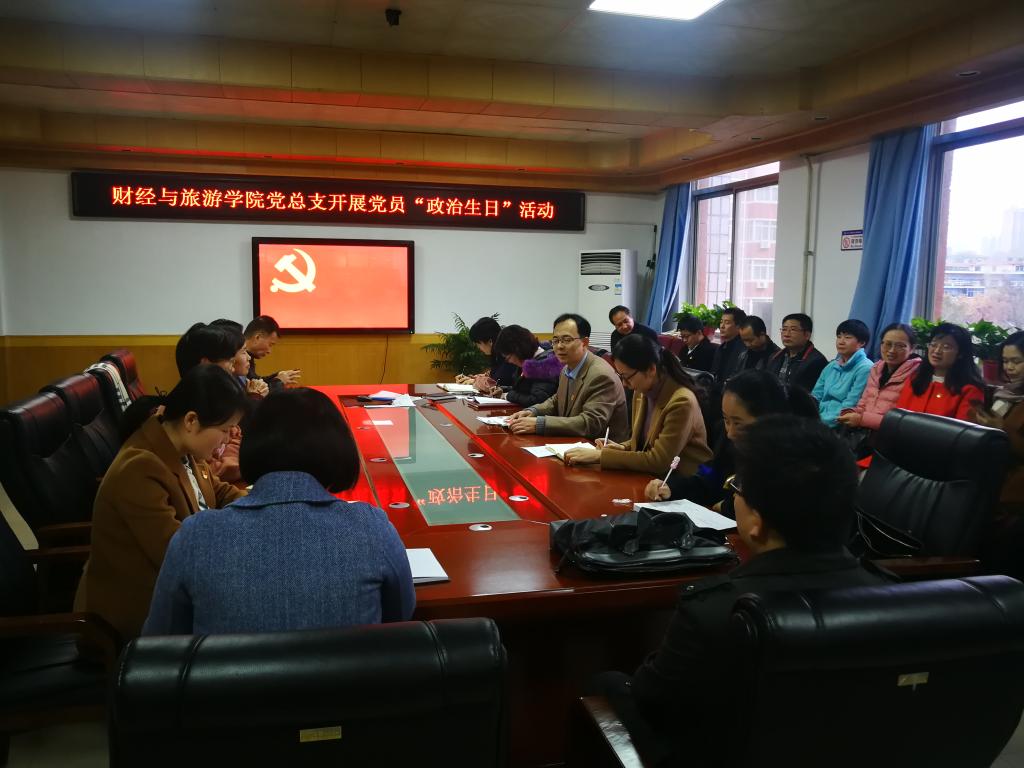 为持续推进“不忘初心、牢记使命”主题教育,进一步引导党员增强党性观念,充分发挥党员的先锋模范作用。11月25日下午,财经与旅游学院党总支开展党员“政治生日”主题活动,财经学院全体党员参加了活动,活动由该院党总支书记孙继龙主持。
