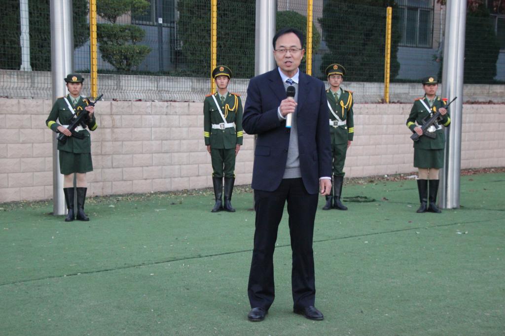 6时50分,升旗仪式正式开始。迎着初升的朝阳,国旗护卫队队员迈着铿锵的步伐护送五星红旗走向升旗台,伴随着庄严的国歌声,五星红旗冉冉升起,全体师生肃立,行注目礼。