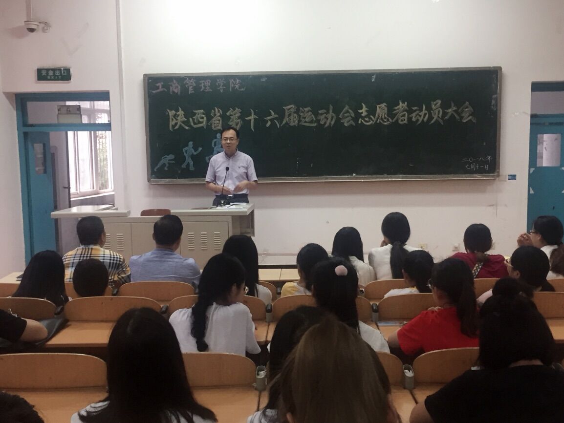 7月11日下午4点40,工商管理学院在崇文西楼101教室,召开了陕西省第十六届运动会志愿者动员大会,工商学院党总支书记孙继龙、学工办主任杜娟、志愿者负责教师罗峰、侯建朝以及全体志愿者共计150余人参加了大会,会议由学工办主任杜娟主持。