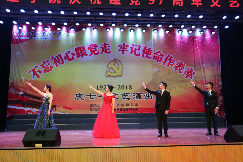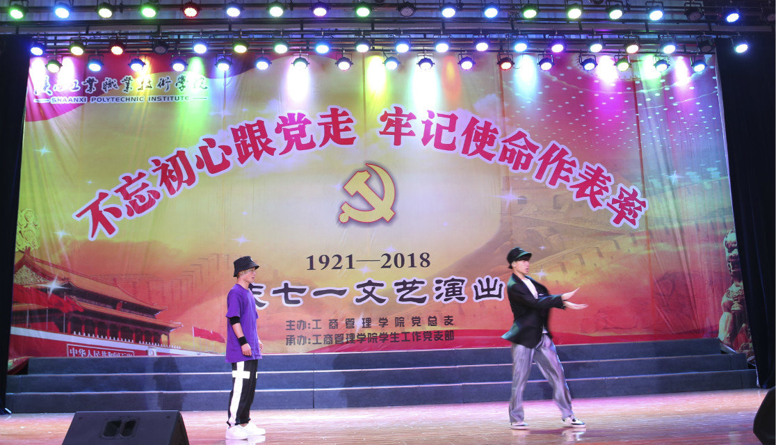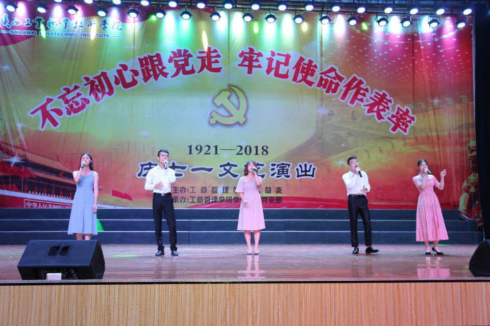 文艺演出在工商学生工作党支部书记杜娟老师带领的44名新党员宣誓中拉开帷幕。整场文艺演出节目形式多样,舞蹈、乐器、朗诵、相声、小品、歌曲等应有尽有。经典节目朗诵《情系梁家河》将整场演出推向高潮。辅导员郭晓莹老师带来的歌伴舞《好儿好女好江山》以及舞蹈《救星共产党》更是赢得观众的一致好评,博得一阵阵热烈掌声。演出在百名入党积极分子大合唱《没有共产党就没有新中国》嘹亮的歌声中落下帷幕。