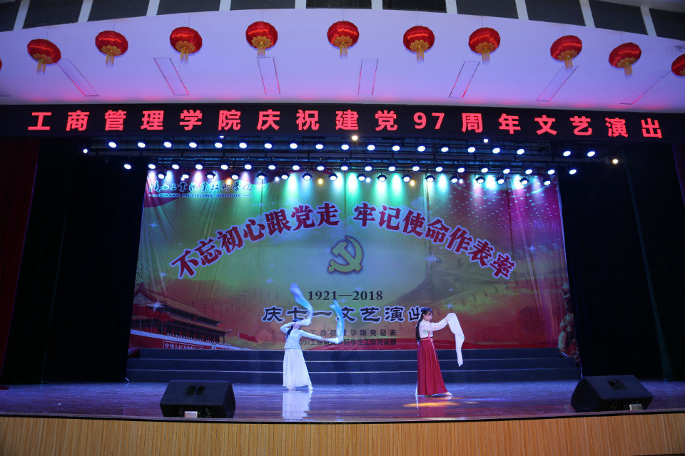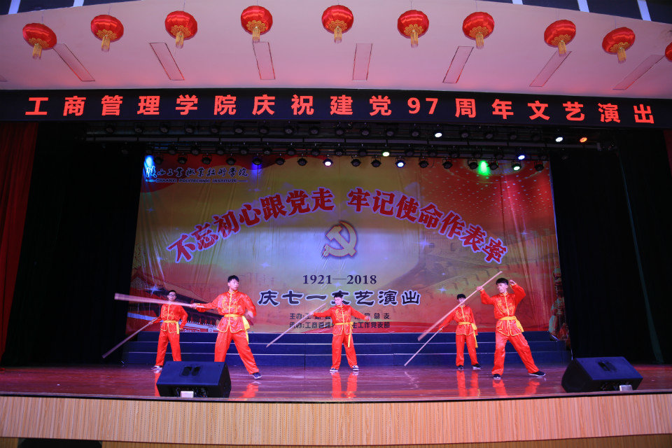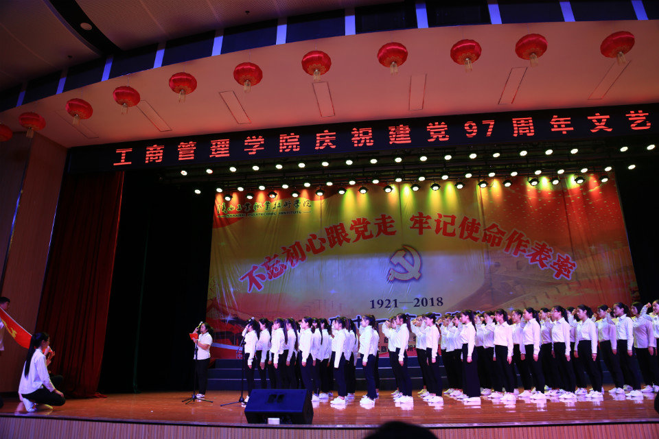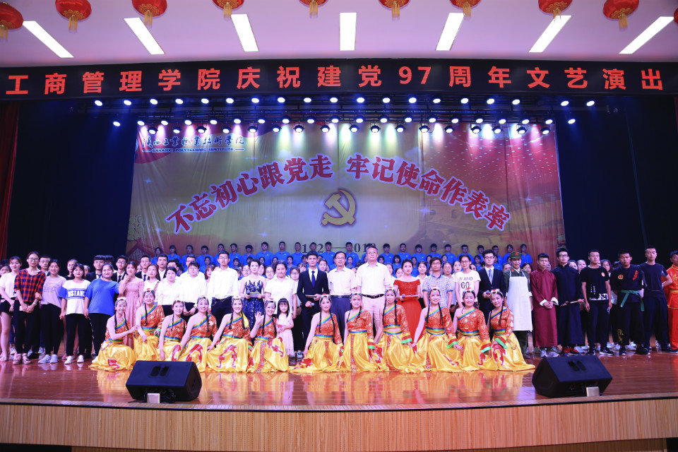 为了庆祝中国共产党成立97周年,持续推进“两学一做”学习教育常态化制度化,激励广大党员不忘初心、牢记使命,6月26日下午,由工商管理学院党总支主办,工商管理学院学生工作党支部承办的主题为“不忘初心跟党走、牢记使命作表率”庆七一文艺演出在明德堂隆重举行,工商管理学院院长韩文飞、党总支书记孙继龙出席。