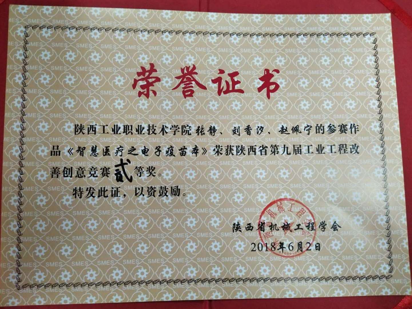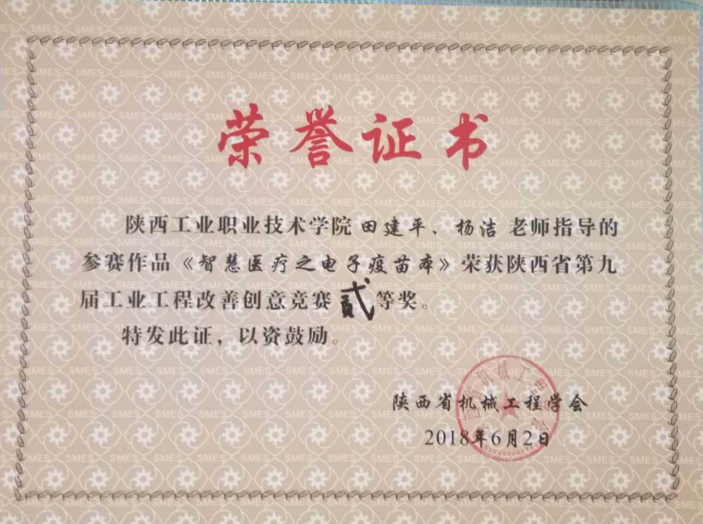 由陕西省机械工程学会主办,陕西省机械工程学会工业工程与管理分会协办,陕西科技大学承办的“陕西省九届工业工程改善创意竞赛”决赛于6月2日在陕西科技大学举行。西安交通大学、辽宁工业大学、陕西鼓风机(集团)有限公司、西安工程大学、陕西科技大学、西北工业大学、西安理工大学、陕西工业职业技术学院等省内外的20所院校和企事业单位代表参赛。本次竞赛历时3个月,先后经历竞赛启动、竞赛宣讲、校内初赛、校内决赛、省内网评、决赛答辩等6个环节,最终从77项参赛作品中评选出前30强进入决赛答辩环节。我院工商管理学院教师田建平和杨洁指导工商1601班学生张静、刘香汐、赵佩宁制作的参赛作品“智慧医疗之电子疫苗本”荣获二等奖。