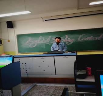 当天下午4点20分,这次竞赛正式开始。比赛采用抽签的形式来决定参赛顺序和比赛内容。比赛共有内容相似、题型相同的4套试题以避免抄袭和相互影响。这次竞赛内容共分为3个部分:朗读、图形描述及回答问题。第一部分文章朗读主要考察学生的语音、语调;第二部分图形描述主要考察学生的口头表达能力;第三部分主要考察学生的表达能力、反应速度以及辩论能力。