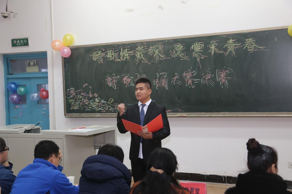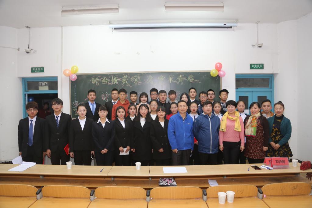 12月5日下午,由院团委主办,工商管理学院承办的陕西工院“诗歌情谊深·愿党永青春”诗歌朗诵大赛决赛,在崇文西楼103举行,各二级学院学生会干部及近200名师生参加了本次活动,院工会王金省、宣传部钟晓书、基础部刘刚、艺术中心袁夏莹、工商学院郭晓莹老师应邀担任评委。