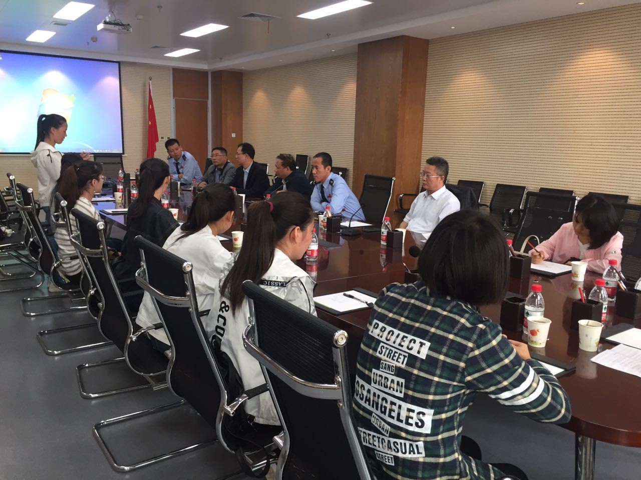 会上,高晓荣书记首先代表直属分局对大学生社会实践活动开展情况作了详细总结。她说,此次活动是继今年六月中旬,税校双方“两学一做聚合力,党团共建促发展”签约暨揭牌仪式后,落实“两学一做”常态化、制度化精神的又一项重要举措。参加本次社会实践的12名学生分别被安排到数据管理、风险管理、重点税源管理、办税服务厅和业务管理等部门。在一个月实习期间,除正常业务学习外,还特意安排了两场讲座、两次外出参观及一次创文志愿服务。同学们在各自的岗位上遵章守纪、勤奋好学、吃苦肯干、乐于奉献,做了大量的具体工作,锻炼了意志,树立了新一代大学生的良好形象,得到分局广大干部职工的一致好评和点赞,实习内容饱满,活动丰富多彩,同学表现优秀。