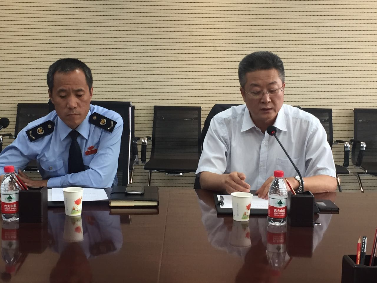 随后,四名学生代表先后畅谈了一个月来社会实践的感受和体会;工商学院院长韩文飞、党总支书记孙继龙及直属分局杨成局长分别讲话。双方祝贺大学生暑期社会实践活动取得圆满成功,这次暑期社会实践活动是学校与当地税务机关密切合作的成功典范,为学生以后走向工作岗位奠定了坚实的基础。双方表示,要按照“以党建带团建、以团建促党建”的思路,坚持党团员活动共同组织、共同开展,充分发挥双方党团员的先锋模范作用,从而实现优势互补、相互促进、合作共赢、共同提高。下一步将继续合作,科学谋划、精心组织、求实创新,不断扩大活动的覆盖面、提升活动的实效性,共同打造“两学一做聚合力,党团共建促发展”的党建品牌。