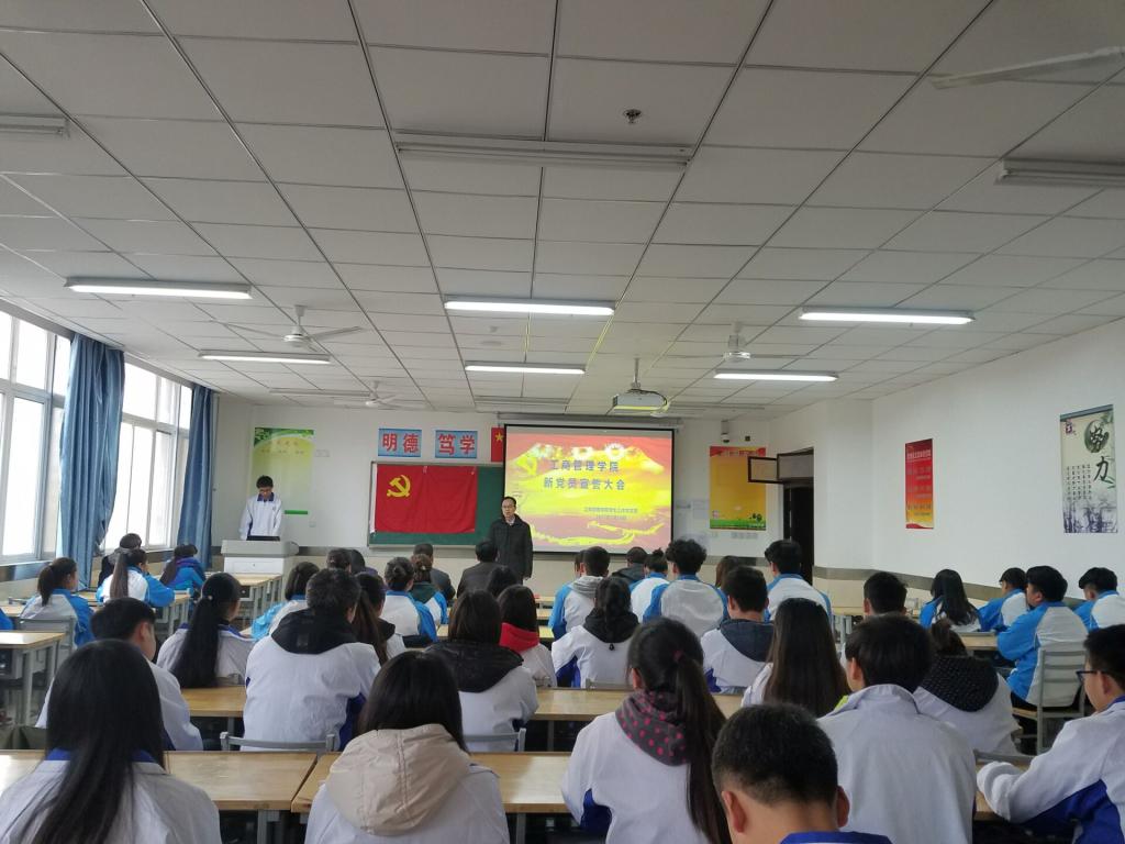 2017年1月10日下午4时,工商管理学院在崇明楼603教室举行2017年第一次新党员宣誓大会。出席此次大会的有学院学工部郝平副部长,工商学院党总支孙继龙书记以及工商学院学工党支部全体教师党员、学生党员和入党积极分子代表共80余人。大会由学工支部书记杜娟主持。