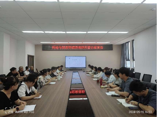 为深入学习贯彻习近平总书记关于大力弘扬教育家精神的重要指示要求和学习贯彻习近平总书记关于教育的重要论述,进一步加强师德师风建设,发挥师德失范案例警示教育作用,引导广大教师规范职业行为、严守师德底线,5月15日下午,财经与旅游学院党总支在崇理楼D504会议室召开了师德师风警示教育会。学院全体教职工参加,会议由党总支书记吴姗娜主持。