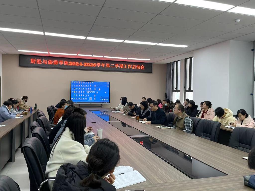 为了明确新学期工作方向,凝聚团队力量,确保各项教学与管理工作高效有序开展。财经与旅游学院2月21日在崇理楼D504召开了2024-2025学年第二学期工作启动会。财经与旅游学院党总支书记吴姗娜、教学办主任仝丹娜、学工办主任李友治、实训中心主任李思维和全体教职工参会。会议由财经与旅游学院院长何奇彦主持。