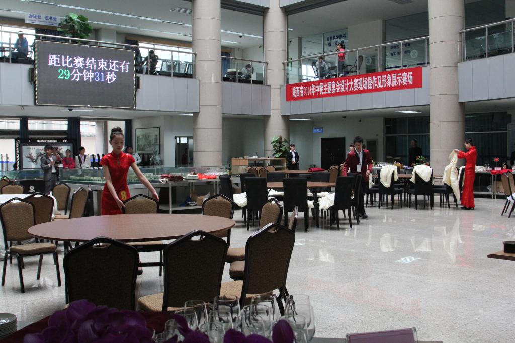 4月25日,2014年陕西省高等职业院校技能大赛“中餐主题宴会设计”赛项在我院工商管理学院酒店管理实训基地顺利举行。杨凌职业技术学院、陕西职业技术学院、陕西青年职业技术学院、陕西工商职业技术学院、陕西工业职业技术学院5所省内院校参加了竞赛,陕西交通职业技术学院观摩了本次竞赛。