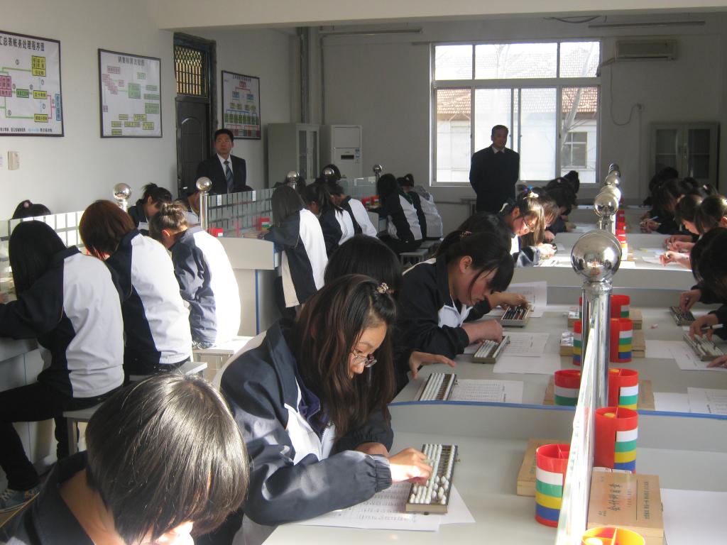 3月28日下午,工商管理学院第六届珠算技能大赛在笃学楼A会计实训室举行,经过初赛选拔,来自2009级、2010级会计电算化专业的54名同学参加了决赛,会计教研室付智勇、王彦德、刘存良、耿仙宁、侯建朝老师组织了本次决赛,工商管理学院院长杨卫军、总支书记韩文飞亲临现场观看大赛。