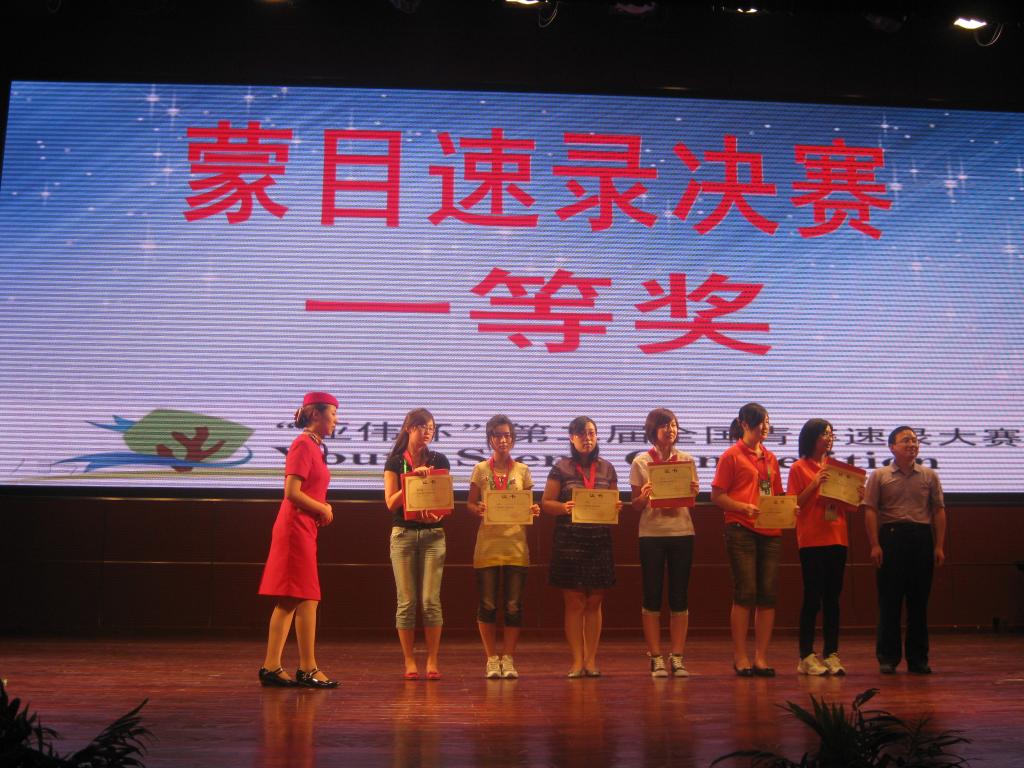 2010年6月26日,全国首届秘书职业技能“速记速录”大赛在河北软件职业技术学院举行,我院文秘专业0701班李媛媛同学发挥出色,一举夺得中级组总决赛和蒙目单项赛两项冠军,在业界引起轰动。同时,我院选派的另一名选手王婷同学也荣获初级组蒙目单项赛季军。