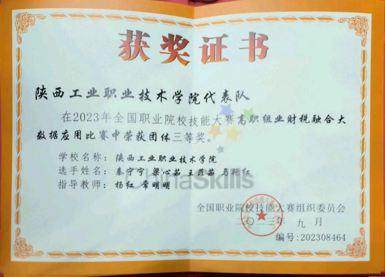 2023年7月22日至24日,2023年全国职业院校技能大赛(高职组)“财税融合大数据应用”赛项在长沙商贸旅游职业技术学院成功举办。本赛项为团体赛,全国31个省共95支队伍380人参赛,每队4人,是全国职业院校技能大赛大规模赛项之一。经过两天的激烈竞争,由我校财经与旅游学院杨红、常明明老师指导的大数据与会计专业秦宁宁、梁心茹、王菲茹、马艳红同学组成的代表队斩获团体三等奖,实现了该专业在学生技能大赛国赛零的突破。