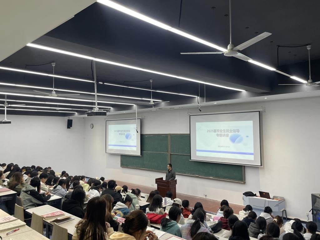 为进一步推进毕业生就业工作,做实做细就业指导服务,促进毕业生高质量充分就业,11月14日,财经学院举办2025届毕业生就业指导专题讲座。讲座由学工办主任李友治主讲,200余名2025届毕业生参加。