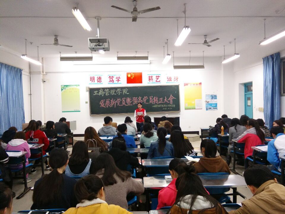 10月30日下午,工商管理学院学工党支部在崇文东楼102教室召开了2016年第六批新党员发展暨第三批预备党员转正大会。大会由党支部书记杜娟老师主持,学工党支部全体正式党员、预备党员、发展对象、介绍人等90余人参加了会议。