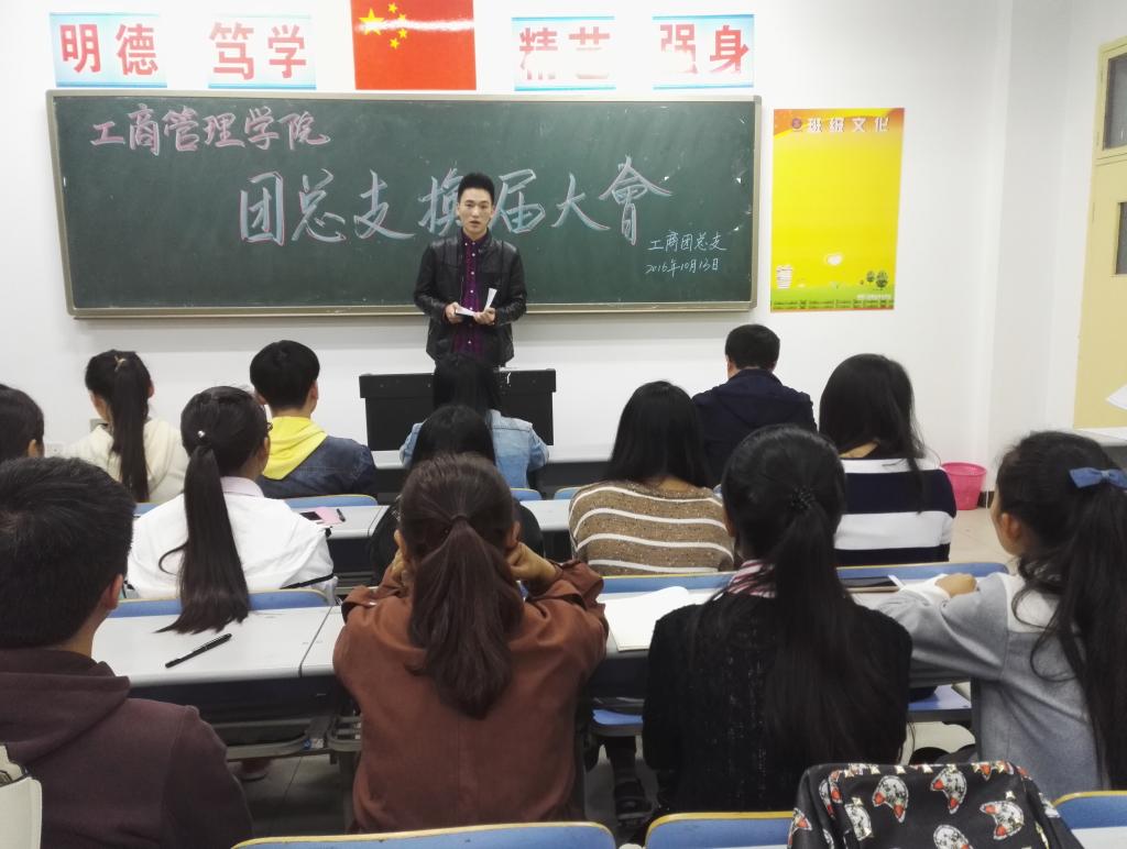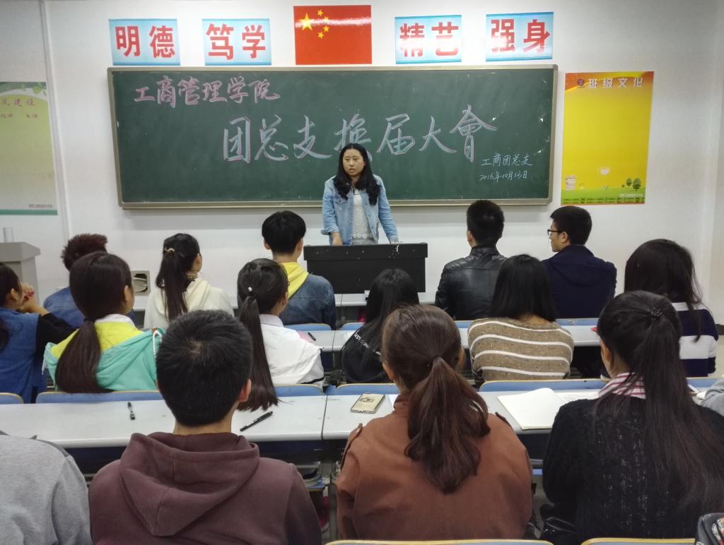 10月13日19:30,工商管理学院于崇文南c509教室举行2016年团总支换届大会。出席本次换届大会的有学工办主任杜娟老师、上届团总支副书记李欢欢以及团员代表共计33人。