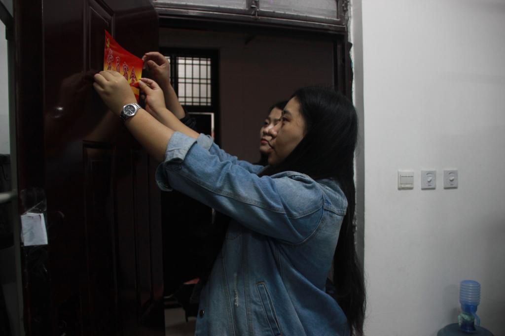 会后,杜娟书记深入学生公寓对学生宿舍进行现场挂牌。