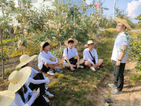 田间地头,共话乡村振兴谋新篇。夕阳西下,实践团队又将思政课堂搬到乡间地头,在陕西第一季现代农业科技有限公司苹果示范园区,陕西工业职业技术学院的张旭老师,给团队成员上了一堂别样的思政课,共话乡村振兴。张旭老师站在新百年的历史至高点上,紧紧结合立德树人和为国育才这一时代要求,详实的讲述了实施乡村振兴战略的历史背景、现实依据和重大意义,并重点讲阐述了乡村振兴战略的总体布局和总体要求,最终落脚到青年人现在该怎么学、将来该怎么做?他鼓励大家要勇担历史使命,赋能乡村振兴,贡献青春力量,把理想种到土地上,让青春与家国共振,把才华施展在乡村振兴的舞台上,让学业在事业中升华。