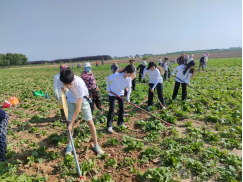 顶着30度的高温,团队成员又来到了大白菜的生产基地,当地村民手把手的教我们锄头怎么使用、杂草和蔬菜苗怎么分辨、以及田间管理和病虫害防治等科普知识,大家也积极参与到锄草、翻地等劳动中来。同学们的肤色嗮黑了,但他们也深深感悟到:只有拿起锄头,步入田间,才能真正理解父母的辛苦和不易。
